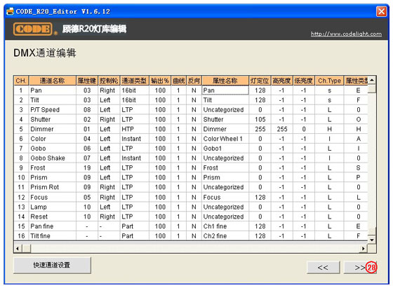 为了使大家能够学会使用这个软件,现以A厂家的一款型号为M的光束灯为例,介绍使用该软件制作灯库的基本步骤。